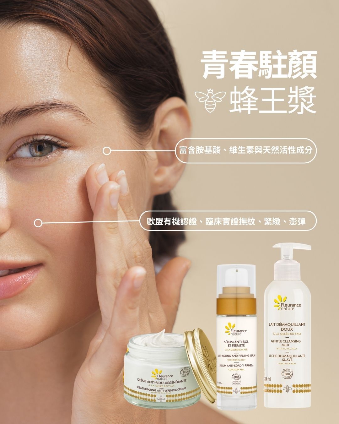青春,從來不只是外表看起來年輕。 真正重要的,是肌膚是否仍保有自我修復、更新與回復平衡的能力。 在芙樂思,我們始終相信, 好的保養,來自對自然的尊重,也來自對肌膚節奏的理解。 不急、不刺激、不追求短暫效果,而是讓肌膚在每天的照顧中,慢慢回到穩定而有生命力的狀態。 從土地開始的保養選擇 芙樂思蜂王漿系列,選用來自 有機花卉環境的蜂蜜與蜂王漿 。 蜜蜂在無農藥、友善生態的環境中採集花蜜, 這不只是為了成分的純淨,更是對土地與生態長久平衡的承諾。 我們堅持的,不只是效果,而是一整條對環境負責的製程理念: 地球友善的養蜂方式 歐盟有機認證原料 成分來源透明、可追溯 因為真正溫柔的保養,應該同時善待肌膚與自然。 為什麼選擇蜂王漿? 蜂王漿,是蜂群中最珍貴、最核心的營養來源。 富含胺基酸、維生素與多種天然活性成分, 在保養中,扮演的是「支持肌膚機能」而非強迫改變的角色。 對肌膚而言,蜂王漿的價值在於: 幫助維持彈性與細緻度 支持肌膚修復與更新節奏 讓膚況回到穩定、有光澤的狀態 特別是在冬季,當肌膚容易乾燥、疲憊、失去彈性時, 蜂王漿提供的,是一種 慢慢恢復青春狀態的力量 , 而不是短暫的表面修飾。 一套完整、可長期實踐的青春日常 芙樂思相信,保養不需要複雜, 真正重要的是「每天都做得到」。 第一步|蜂王漿賦活滋養卸妝乳 在清潔的同時,保留肌膚原本的柔軟與舒適。 卸妝後不乾澀、不緊繃,讓後續保養更好吸收。 第二步|蜂王漿緊緻賦活精華 高濃度蜂王漿活性, 幫助肌膚回到彈潤、有精神的狀態, 是日夜保養中不可或缺的核心步驟。 第三步|蜂王漿緊緻賦活經典霜 為肌膚鎖住滋養與水分, 夜晚修護、白天維持穩定, 讓膚況在長時間中逐漸累積改變。 三個步驟,不追求堆疊, 而是讓保養回到簡單、安心、可持續。 對肌膚,也對時間溫柔以待 芙樂思蜂王漿系列堅持: 歐盟有機認證 成分來源透明可追溯 藥師專業推薦,長期使用更安心 我們不談「逆齡」, 因為青春不是對抗時間, 而是讓肌膚在每一個階段,都被好好照顧著。